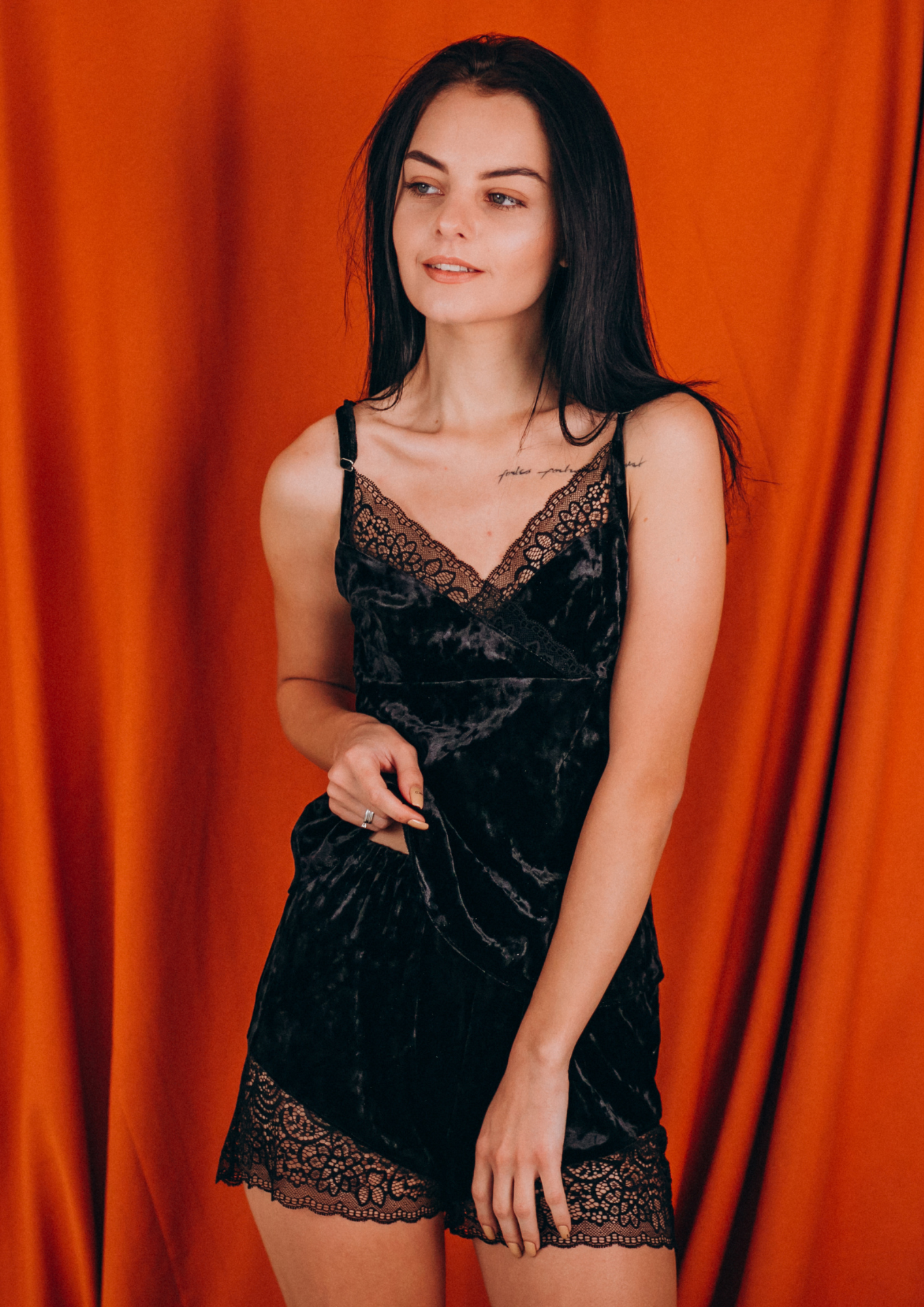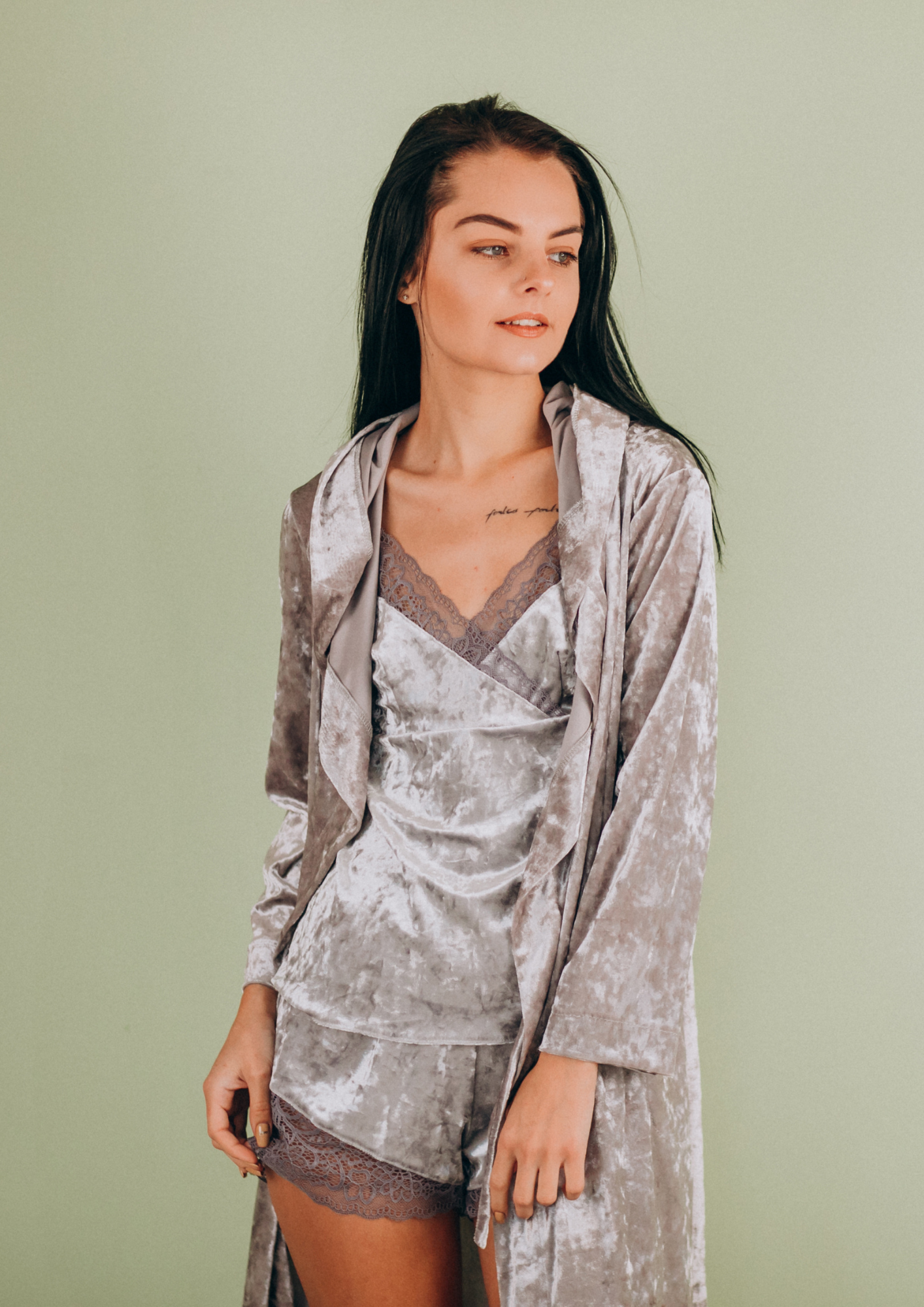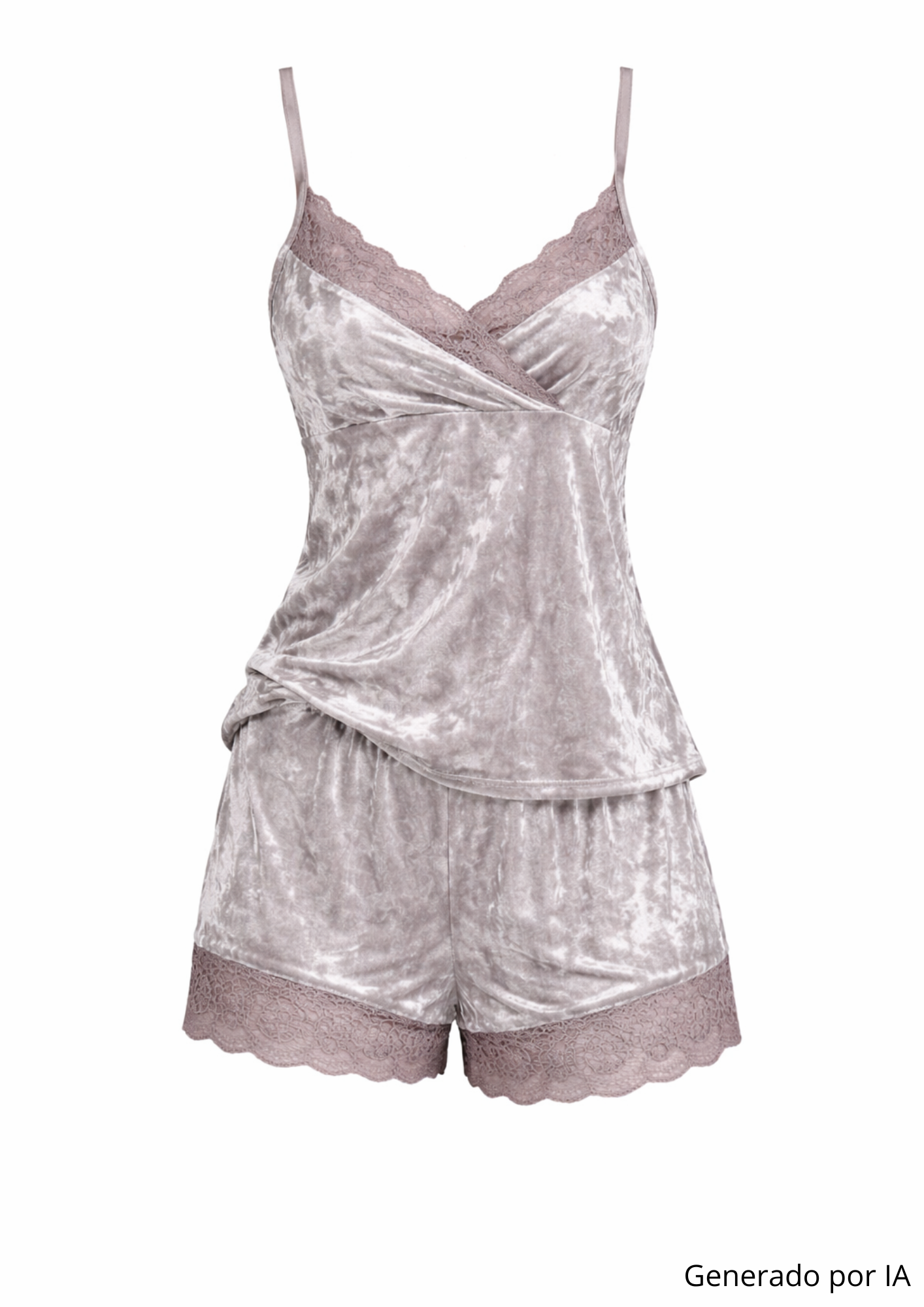 Pijama de terciopelo con encaje, suave al tacto y con un diseño femenino que estiliza. Perfecto para sentirte cómoda sin renunciar a un look cuidado.